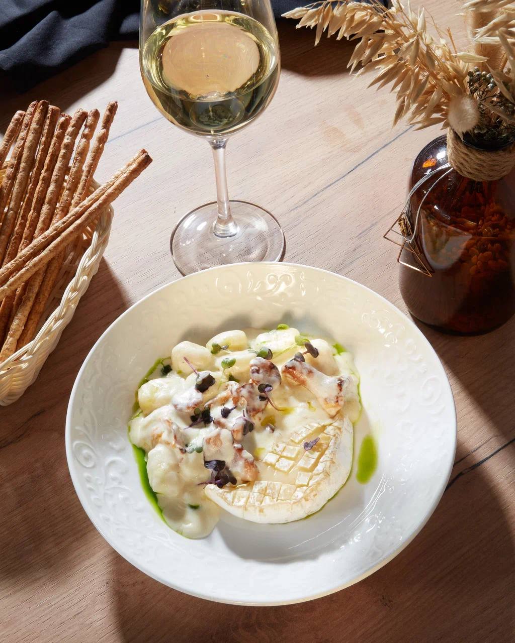 В Luma мы предлагаем ньокки с лисичками в сливочном соусе с запеченным камамбером. Мягкие картофельные ньокки тают во рту, а лисички дарят легкую лесную сладость. Запеченный камамбер добавляет сливочную глубину и делает блюдо настоящим гастрономическим удовольствием.